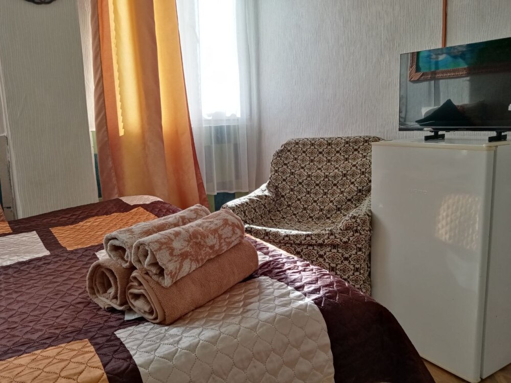 В комнате кровати, шкаф, холодильник, телевизор, вентилятор, сейф, посуда, постельное бельё. В санузле: душ - горячая и холодная вода постоянно, умывальник, унитаз.