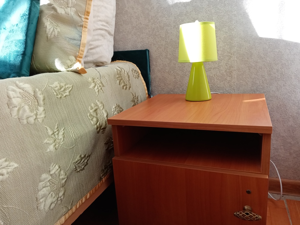 В комнате кровати, тумбочки,шкаф, холодильник, вентилятор, сейф, посуда, постельное бельё. В санузле: душ - горячая и холодная вода постоянно, умывальник, унитаз.