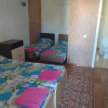 Предлагаем для проживания 2,3,4,5-местные номера. В каждом из них: кондиционер, телевизор, холодильник, чайник, санузел, Wi-Fi. Закрытая автостоянка, мангальная зона, беседка, детская песочница. Имеется общая кухня-столовая, стиральная машина, гладильные принадлежности. Рядом находятся кафе, столовые, магазины, рынок.