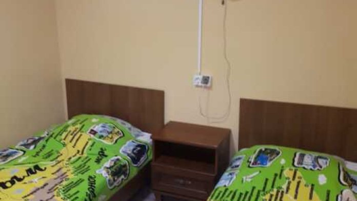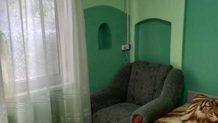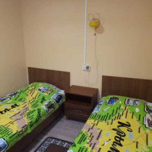Стандартный с телевизором и кондиционером. Есть шкаф, тумбочка, вешалка, зеркало. Смена постельного белья и уборка еженедельно. Находится на первом этаже, совмещенный санузел и гостевая кухня расположены отдельно на этом же этаже.