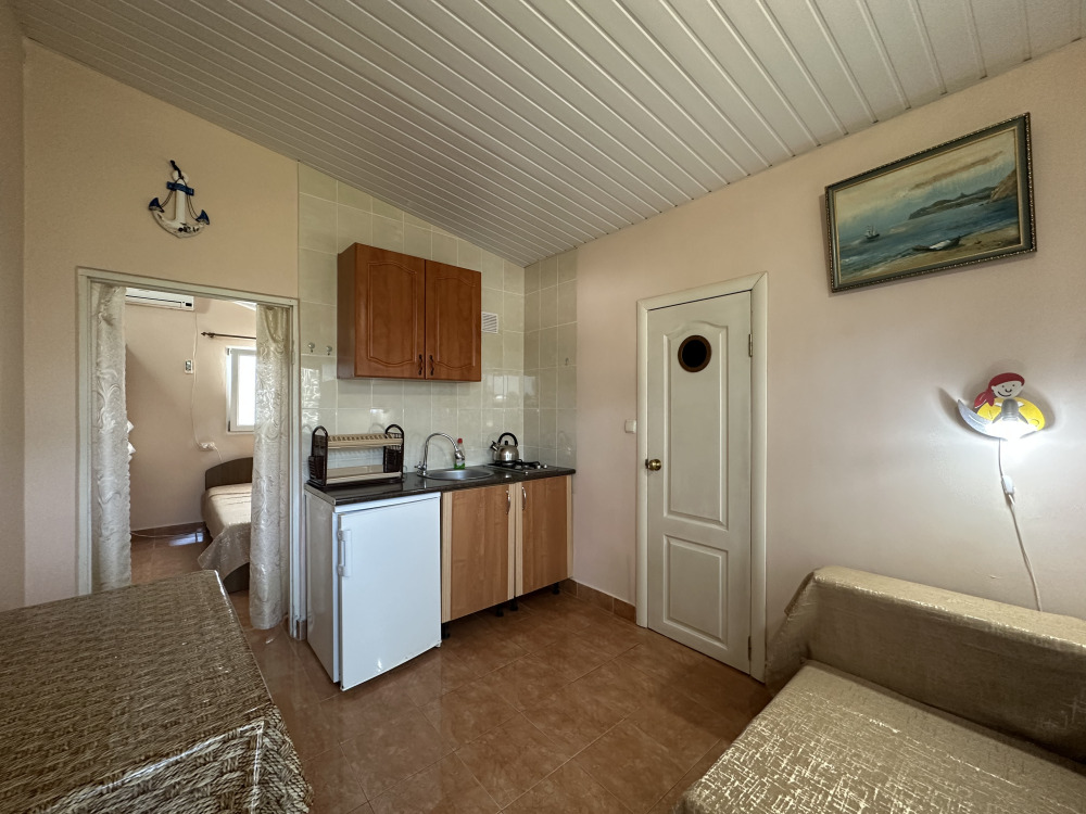 - Дом находится по середине Орджоникидзевского полуострова. От гостевого дома удобно пройти на пляж в бухту Провато (Центральный пляж), или на пляж в Двуякорной бухте.