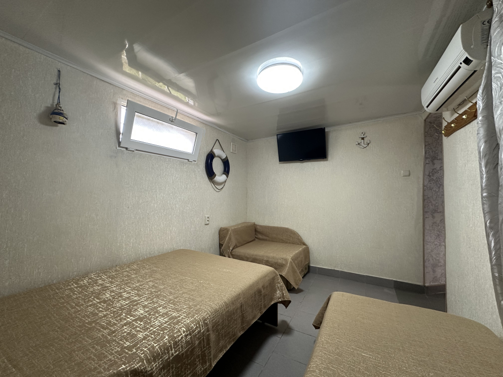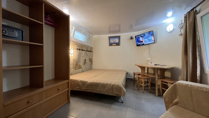 Номера со всеми удобствами, рассчитаны на размещение 2-5 человек. Каждый номер (каюта) оборудован: мебелью (деревянные кровати или диваны, стол, стулья, тумбочка, шкаф), плазменным телевизором, кондиционером, сейфом, в каждом номере персональная кухня, оборудованная холодильником, газовой плитой и набором посуды, санузел (унитаз, душ, умывальник).