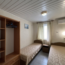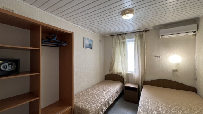 Двухместные номера находятся на 1-3 этаже. В каждом номере: санузел (душ, туалет, умывальник), оборудованная кухня (газовая плита, чайник, вся необходимая посуда, холодильник), телевизор с кабельным ТВ, кондиционер, сейф, шкаф, спальная мебель. Вода холодная и горячая постоянно. В номере есть покрытие Wi-Fi сети.
