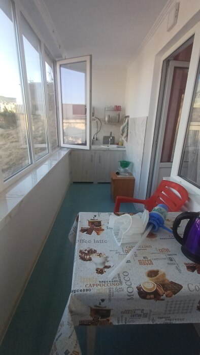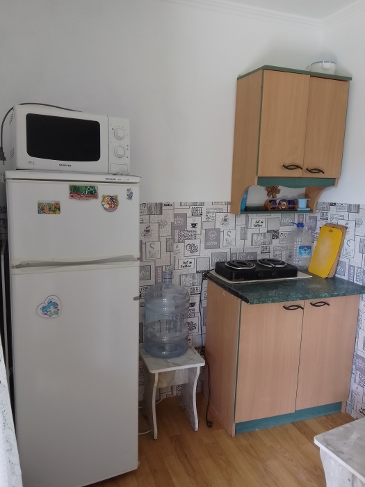 В каждом номере есть кухня, которая оборудована всем необходимым для самостоятельного приготовления: холодильник, микроволновка, кондиционер, телевизор, спутниковое ТВ. Есть беседка на свежем воздухе, мангал. Прекрасный вид на Генуэзскую крепость.