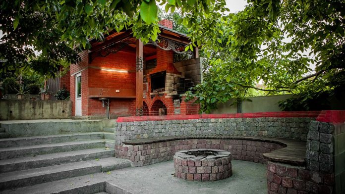Большая зеленая территория, зоны для отдыха на свежем воздухе, мангал, беседка, качели.