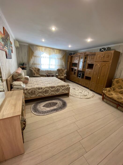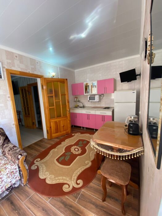 В каждом большом номере в наличии уютная мебель, телевизор, WI-FI, кондиционер, кухня( оборудована всем необходимым для приготовления пищи), санузел с душевой кабинкой, вода горячая и холодная постоянно.