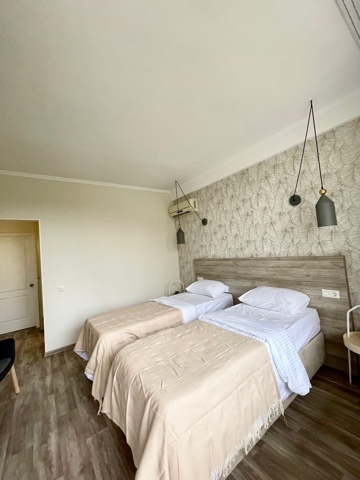 2-местный номер оснащён кондиционером, телевизором, шкаф, зеркало, душевая кабина, умывальник, туалет. Возможно размещение с ребёнком, доставляется евро раскладушка, бесплатно. На балконе у номера имеется личная зона отдыха со столиком и стульями Горячая и холодная вода подаётся круглосуточно.