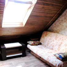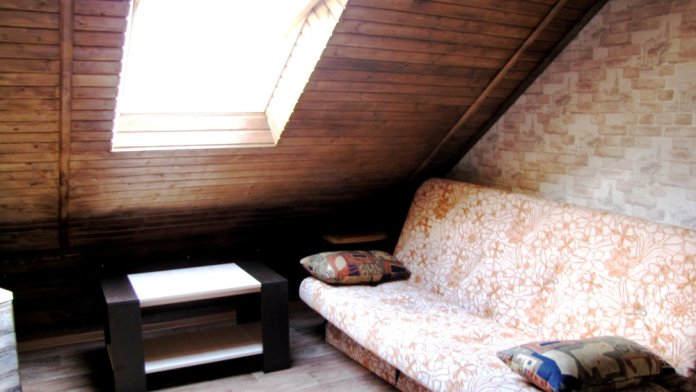 В уютном номере 1 большая двуспальная кровать и 1 современный диван-кровать, с красивым видом на горы. На этаже всего два номера.