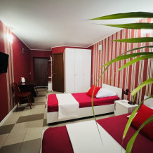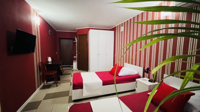 В каждом номере кондиционер, санузел, телевизор, Wi-fi, холодильник, электрочайник, и посуда. А номер люкс дополнительно оснащен кухней, что позволит вам чувствовать себя как дома.