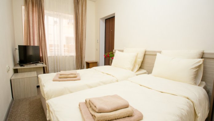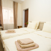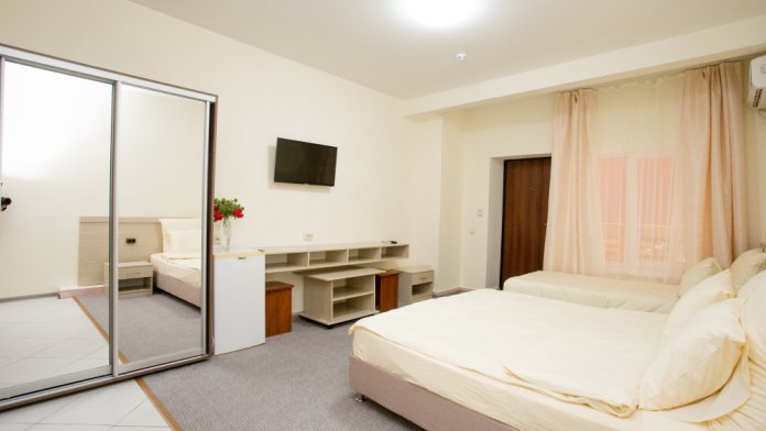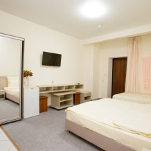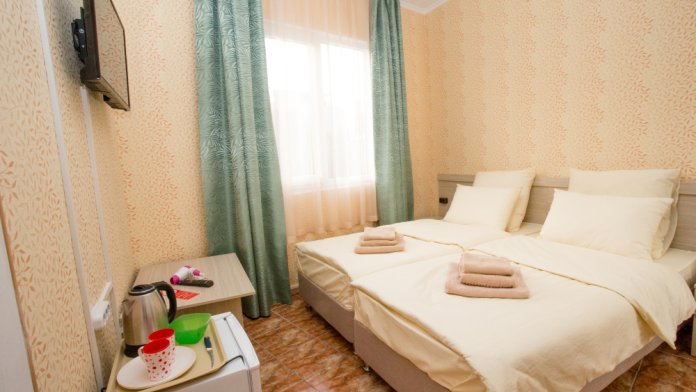 К услугам гостей: проживание в номерах со всеми удобствами, во всех номерах новая светлая мебель, ж/к телевизор, кондиционер, холодильник, эл. чайник, минимальный набор посуды, индивидуальный сейф, фен, комплект номерных полотенец (3 шт. для одного гостя), минимальный набор косметических средств, полный санузел.
