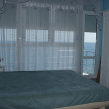 Всего под сдачу отведено 3 комнаты: одна - на юг, с видом на море, две - на северную сторону, с видом на горы и кипарисы. Комната, что с видом на море, расположена на третьем этаже, оборудована балконом. Две другие расположены на втором и третьем соответственно.