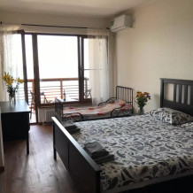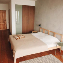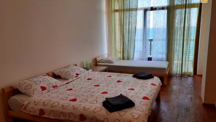 В номере двуспальная кровать или две односпальные. Холодильник на этаже. Панорамные окна и балкон с видом на море. Полы из массива лиственницы.