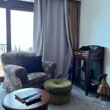Роскошный апартамент в весенних оттенках цветущей Крымской глицинии. В нем будто чувствуется тот самый неповторимый аромат чудного растения — сладкий и нежный, слегка отдающий мёдом. Вид из панорамных окон на морскую гладь ложится идеальным завершающим мазком, как на картине.