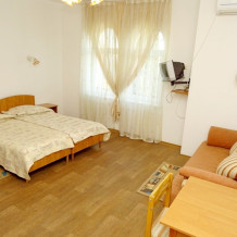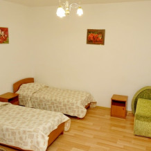 Во всех номерах установлен телевизор со спутниковыми каналами, холодильники. В части номеров обустроена гостиная зона. Из номеров полулюкс, семейного и номера с балконом открывается вид на море или горы. В собственной ванной комнате в распоряжении гостей ванна и/или душ. В номерах «полулюкс» есть кондиционеры.