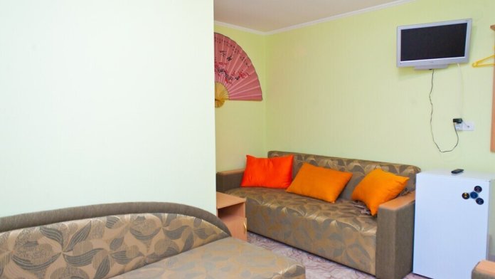 В номерах гостевого дома имеются собственные душевая, санузел, телевизор с плоским экраном и кабельным телевидением, кондиционер и холодильник. Горячая и холодная вода – круглосуточно.
