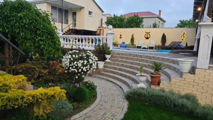 Для размещение гостям предлагают комфортный дом для 2-х семей. Во дворе бассейн в форме скрипки 8х4 м, бильярд, качели беседки, зона барбекю.