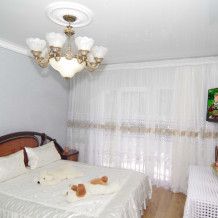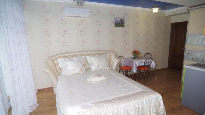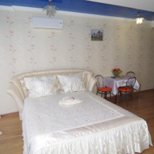 В апартаментах кондиционеры, спасающие от летней жары. Плазменный телевизор, бесплатный WI-FI, пакет цифрового телевидения, автономное газовое отопление, паркинг в 5 метрах от гостевого дома. Все комнаты оборудованы так, что на протяжении всего отдыха Вы чувствуйте себя как дома. Вам захочется остановиться в каждом из них - настолько они индивидуальны.