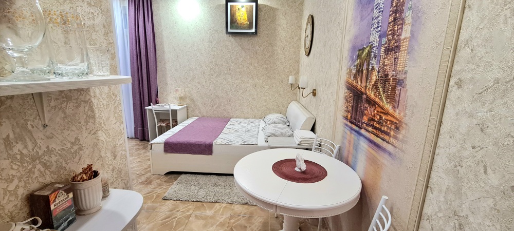 Мы предлагаем нашим гостям комфортабельные, современные и уютные по-домашнему номера с кухонной зоной или кухней, где есть эл. чайник, чашки, тарелки, столовые приборы, микроволновка, разделочная доска, штопор, холодильник, а также бесплатный Wi-Fi и эл. плита (но эл. плиты подключены не во всех номерах), TV с плоским экраном, кондиционер, стиральная машинка, фен, утюг , гладильная доска, собственная ванная комната с душем и туалетом.