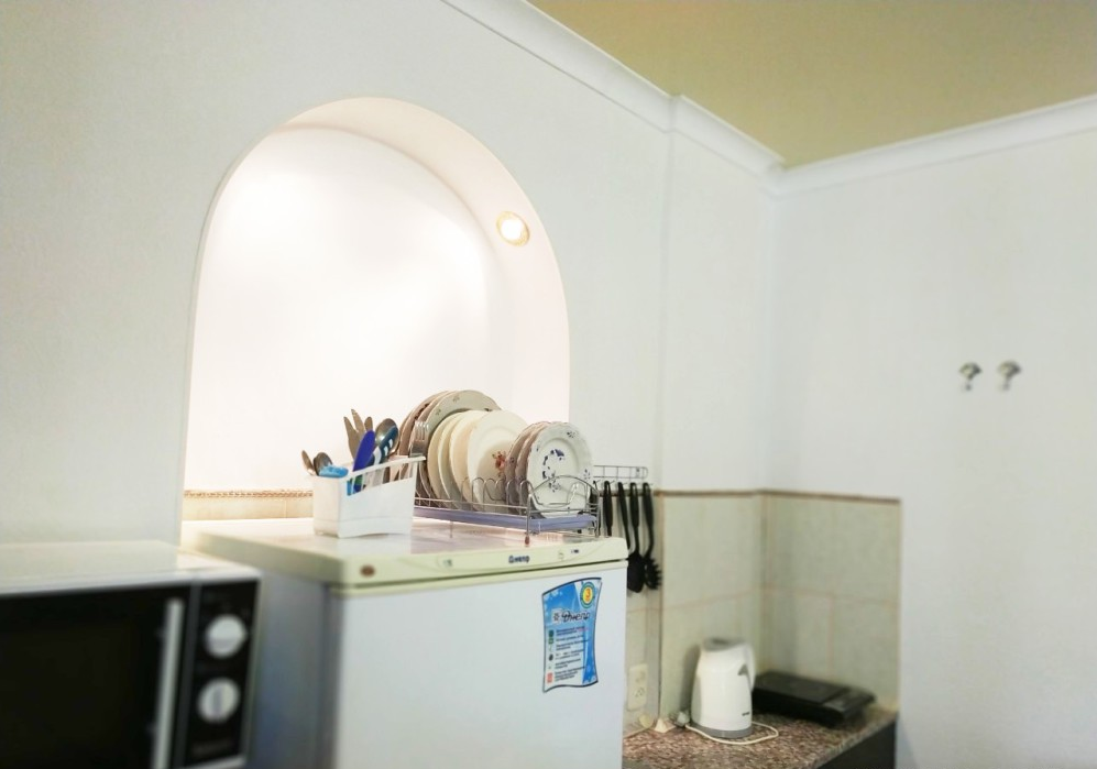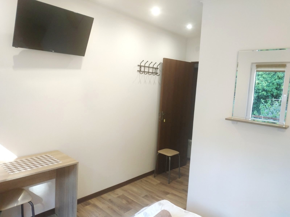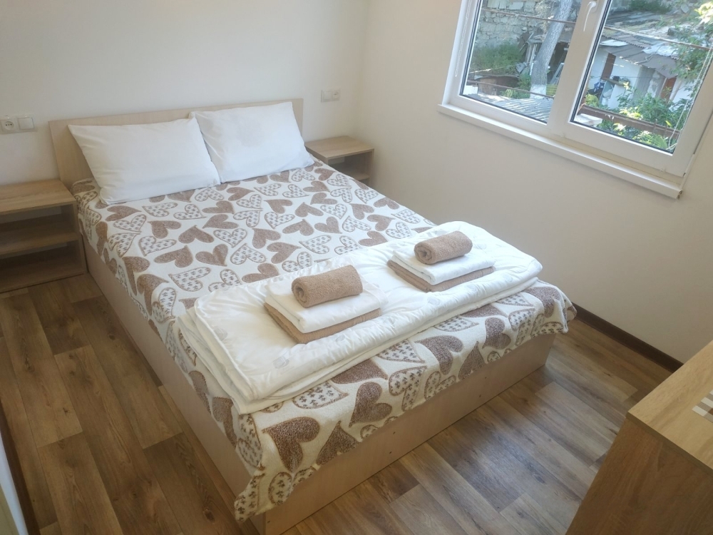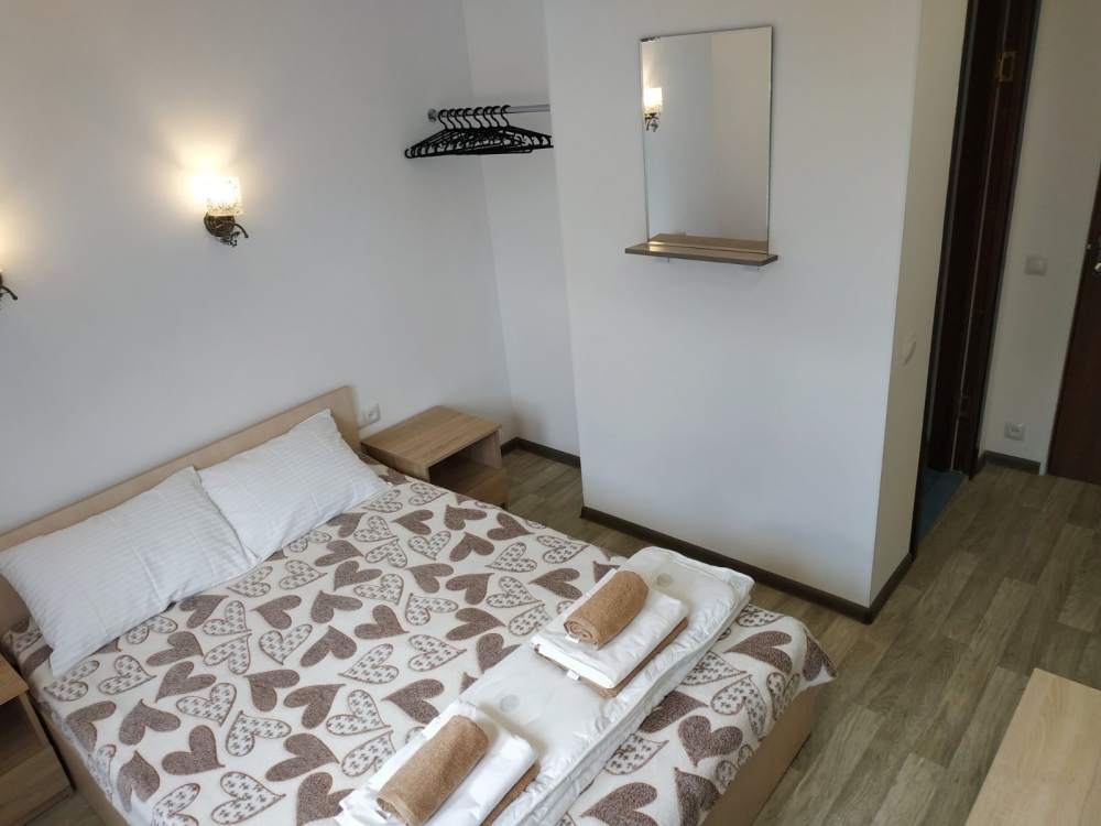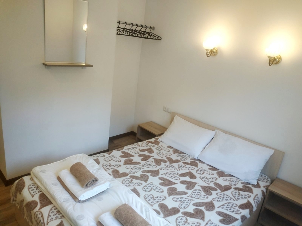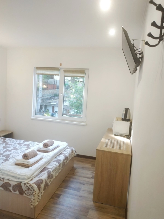 Очень маленький номер, пододеяльников для одеял мы так и не увидели, краны текут, мусор не убирается, кровати ужасные, матрас съезжает, всю ночь поправляли, хозяева адекватные люди, но неисправный кран так и не подчинили.