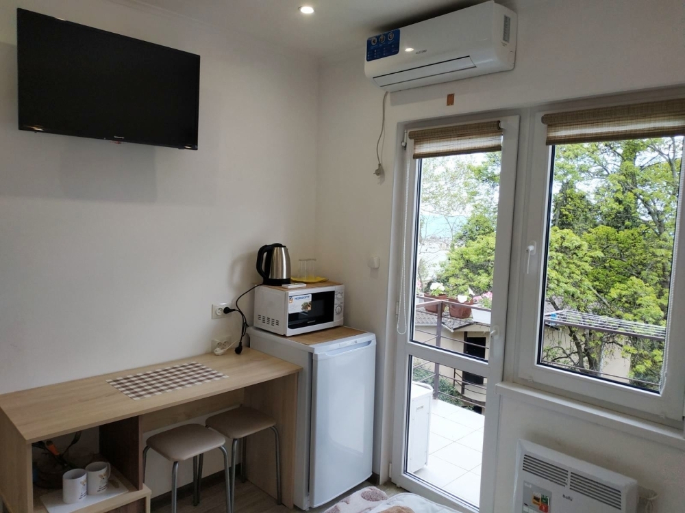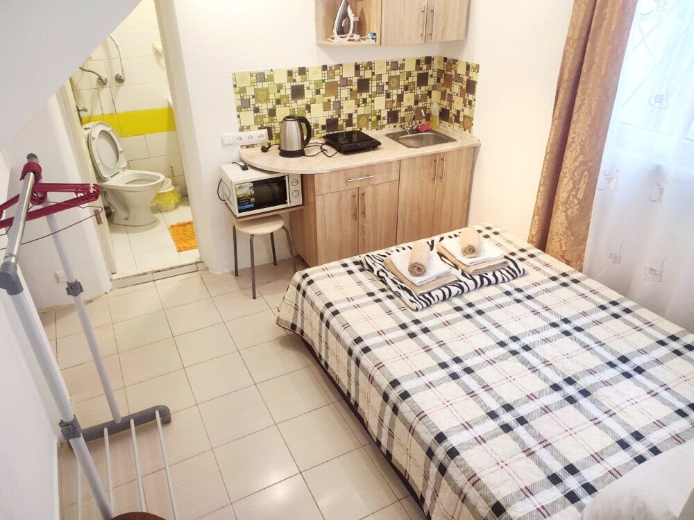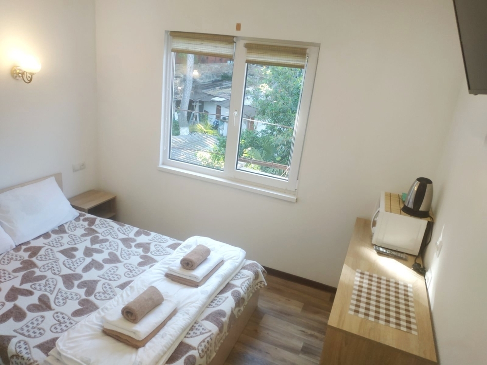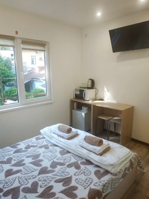 По приезду и в течении всего прибывания в гостевом домике, находились под положительным впечатлением. Хозяева - приветливые люди. Встретили хорошо. Комната - полулюкс, расположена на третьем этаже дома, чистая, оснащённая всем необходимым (холодильник, кондиционер, телевизор, посуда и т.п.). Выход и проход к набережной практически в теневой стороне в пяти минутах ходьбы. Недалеко расположена столовая - шведка с приемлемыми ценами и качеством блюд. Продуктовый магазин также рядом- 3 минуты ходьбы ( всё необходимое). Вообщем, всё понравилось. Рекомендуем.