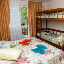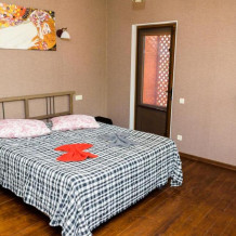 Мы предоставляем отличные условия для Вашего отдыха в мини-отеле «На Народной». У нас 13 отдельных комфортабельных номеров. 10 однокомнатных, рассчитанных на размещение от одного до четырёх человек. При необходимости в некоторых номерах можно установить дополнительное спальное место. В каждом из 3-х двухкомнатных номеров могут легко разместиться более четырёх человек. Каждый номер имеет индивидуальный вход и оборудован кондиционером, телевизором, холодильником, санузлом с душевой кабиной (горячая вода круглосуточно). Два двухкомнатных номера имеют общую веранду-кухню.