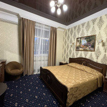 Номера «Полулюкс» в гостевом доме «ROYAL» гарантируют незабываемое пребывание и полноценный отдых. Они характеризуются приятным цветовым оформлением, сдержанным интерьером и вниманием к деталям, что создает атмосферу релаксации и гармонии.
