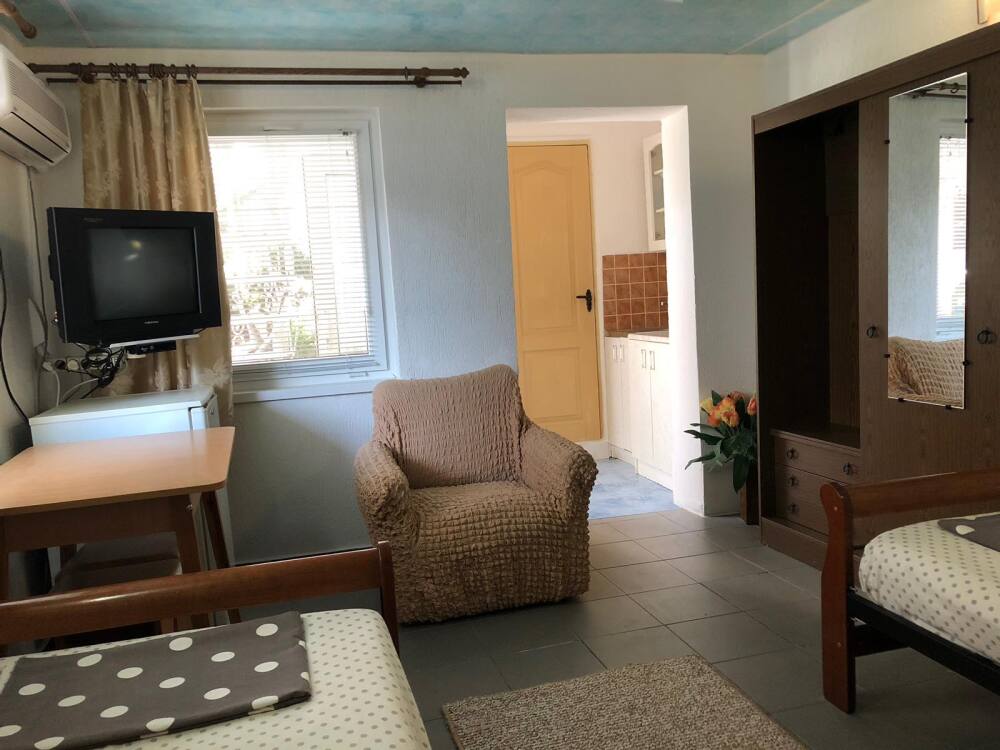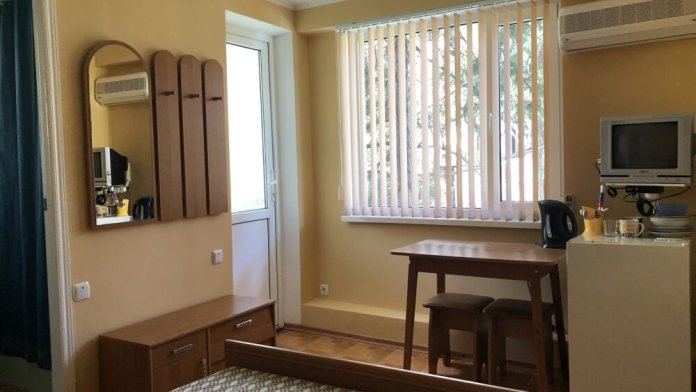 Удобства: кондиционер, холодильник, телевизор, кабельное ТВ, СВЧ, электрочайник, посуда, интернет.