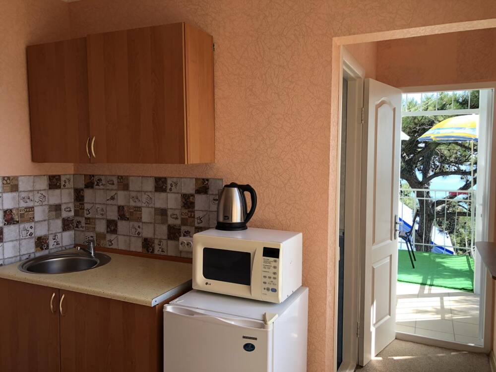 Гостевой дом «АнНи» - это ухоженная закрытая частная территория с можжевеловыми деревьями, крымской сосной, цветами, видом на море и гору Ай-Петри. На территории бассейн, общая летняя кухня с набором посуды, отдельная зона для приготовления мясных блюд (барбекю, шашлычница). 70% номеров оборудованы мини-кухнями (рабочий стол, мойка, антресоль с посудой, микроволновая печь). На расстоянии 500 метров от Гостевого дома расположены: магазины, кафе, банкоматы, остановка общественного транспорта, аптека. Расстояние до моря складывается так: 600 метров до санатория «Родина» или «Днепр». 300-350 метров по территории санатория. Кроме того, дня наших гостей мы предоставляем бесплатный трансфер до проходных указанных санаториев.