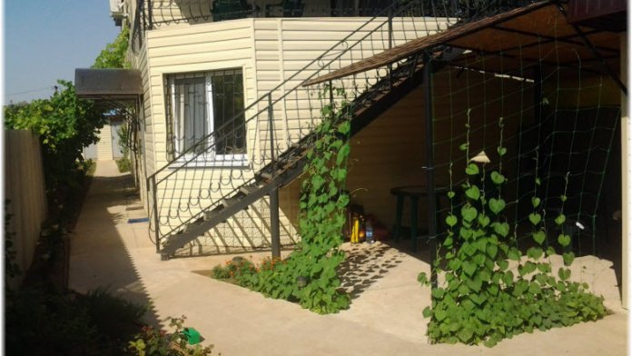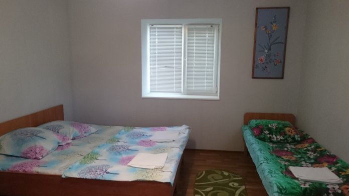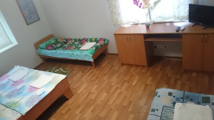В номере кондиционер, телевизор, вай-фай. Сан.узел совмещен с душем, рассчитан на 2 номера. Находится рядом с номером. Кухня общая для двух номеров. Питание самостоятельное. Дополнительно есть душ и туалет рядом с номером. Во дворе беседка для отдыха, детский уголок, бесплатная парковка, зона барбекю. Мангальные принадлежности, качели, песочница для детей. Предоставляем за доп.плату: прокат велосипедов, пользование стиральной машинкой, своя банька на дровах! Предоставляем трансфер и услуги такси по Крыму, проводим экскурсии