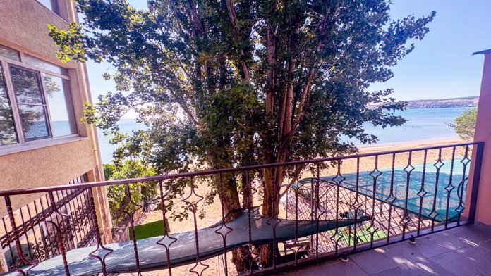 - 2 этаж: две спальни, одна с балконом и видом на море.