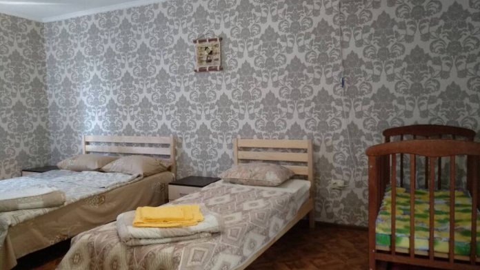 1 двуспальная кровать, 1 односпальная кровать, 1 диван-кровать, детская кроватка (по запросу)