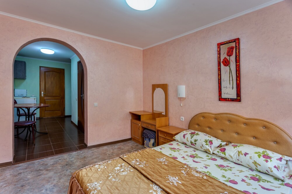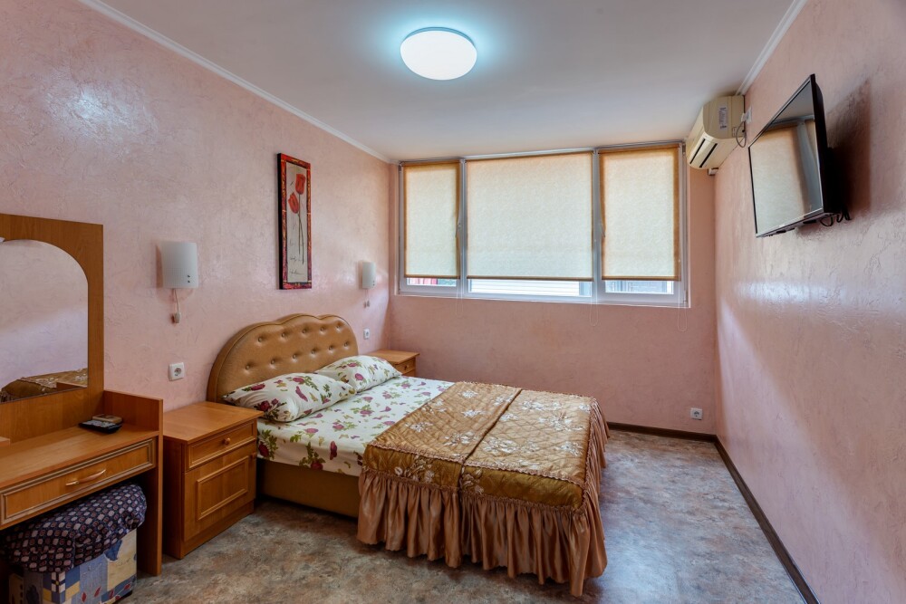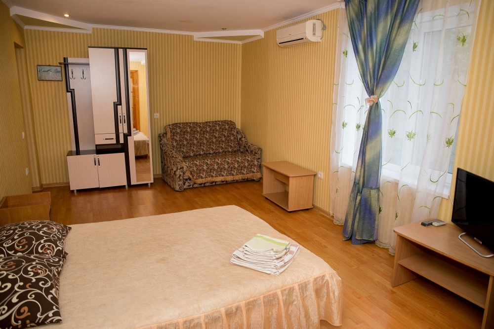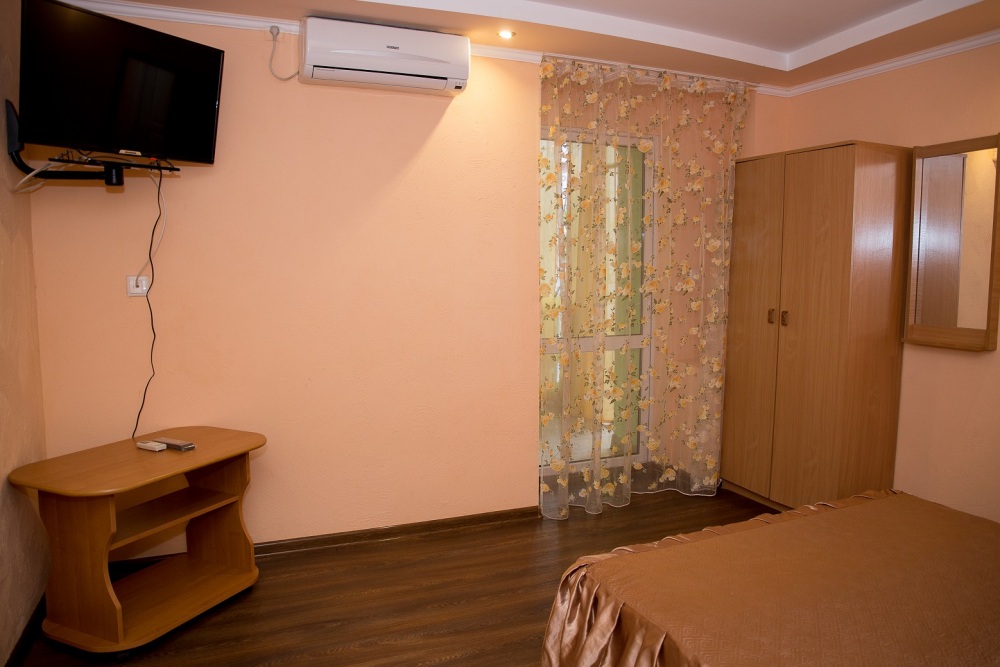 Расположенный почти у берега моря, в 200 метрах, спрятан в тенистой зелени от шума множества развлечений. Вы сможете отдохнуть всей семьей или веселой компанией. Сможете посмотреть любимый канал спутникового телевидения не выходя из номера. А также побаловать себя другими дополнительными сервисами.