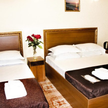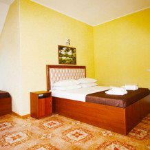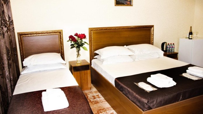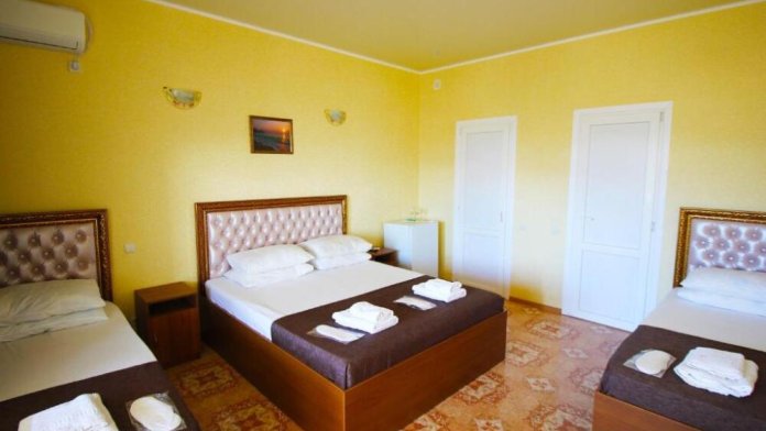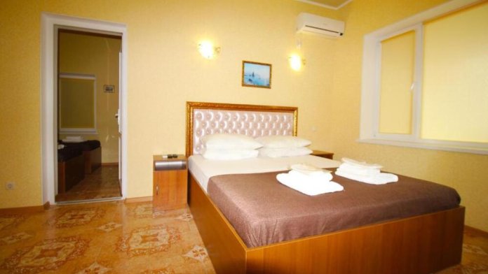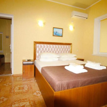 Номера оборудованы телевизором с плоским экраном, холодильником, кондиционером, сейфом, гардеробом, санузлом. Все номера с балконом и видом на море и горы.