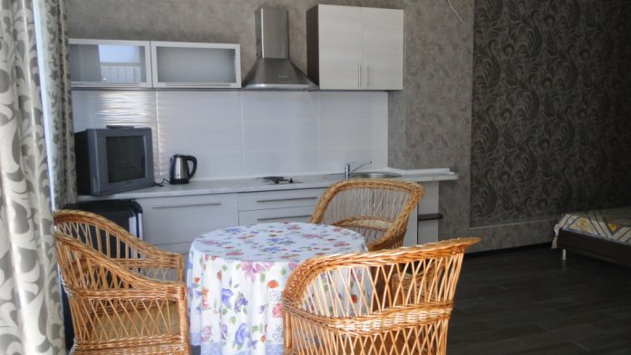 Там же находятся : столовые, кафе, рестораны, продуктовые, винный магазины, рынок, сувенирные лавки. Ближайшая остановка транспорта по городу и за его пределы, сан.«Киев» с круглогодичной лечебной базой расположены в двух минутах от дома.