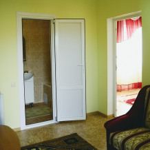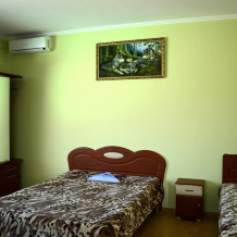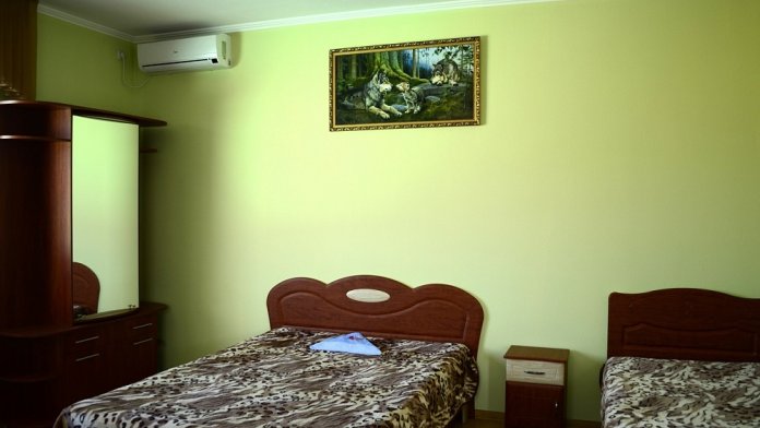 Номера комфортные, обставлены мебелью - двуспальная кровать с ортопедическим матрасом, ТВ, кондиционер, холодильник, ванная комната. Балкон общий с видом на море.