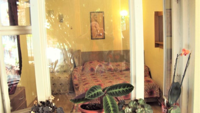 Отдельный однокомнатный домик в цветах, для сна диван двухспальный и кресло -кровать.,свежее белье. Большая ванная комната, полотенца. Wi-Fi. Кухня с набором посуды,.электро плита. печь СВЧ, Холодильник, эл. чайник, вода гор/хол круглосуточно. утюг, TV,