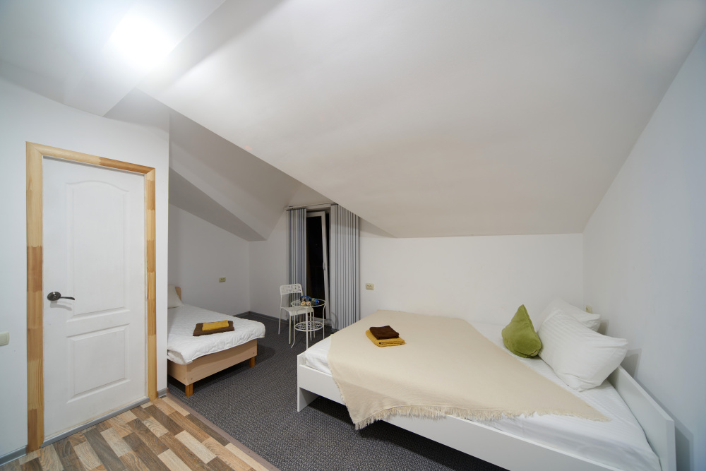 Для размещения своих гостей мини-отель предлагает двух- или трехместные комфортабельные номера. Все номера оборудованы необходимой мебелью, кондиционером, холодильником, душевой комнатой и интернетом wi-fi. На прилегающих балконах, оснащенных летней мебелью, Вы можете насладиться прекрасными крымскими вечерами. Мини-отель располагает местами для автостоянки.