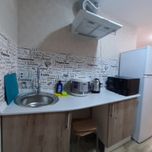 Однокомнатный номер рассчитан на двоих человек. Есть всё для комфортного проживания, а именно: санузел с комфортной душевой; двухспальная кровать с качественным матрасом; вместительный шкаф-купе; холодильник; микроволновка, электрочайник; телевизор (кабельное тв); гладильная доска, утюг, фен, сушилка для одежды; полотенца, постельное белье; посуда; кондиционер; очень быстрый WI-FI.