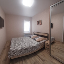 В двухкомнатных апартаментах с легкостью могут разместится до 4 человек. Есть все для комфортного проживания, а именно: санузел с комфортной душевой; двухспальная кровать с качественным матрасом; удобный и большой двухспальный диван; вместительный шкаф-купе; стиральная машина; холодильник; микроволновка, электрочайник; телевизор в комнате с кухонной зоной и в спальне (кабельное тв); гладильная доска, утюг, фен, сушилка для одежды; полотенца, постельное белье; посуда; кондиционер; очень быстрый WI-FI.