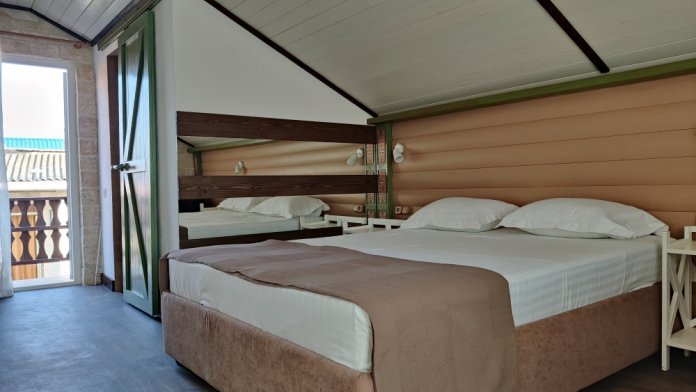 В номере: Wi-Fi, кондиционер, одно и двухспальные кровати, холодильник, телевизор, стол, чайник, посуда. Для желающих готовить предоставляем мультиварку.