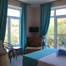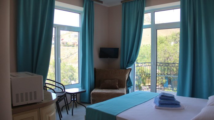 Элегантные номера с захватывающим видом: каждый из 11 тщательно спроектированных номеров выходит на собственный балкон, откуда открывается потрясающий вид на величественный заповедник кара-даг или чарующее черное море. Просыпайтесь под нежные звуки природы и наслаждайтесь живописной красотой прямо из своей комнаты. Интерьеры продуманно оформлены и оснащены телевизорами с плоским экраном, кондиционерами и просторными местами для хранения вещей, что обеспечивает комфортное и удобное пребывание.