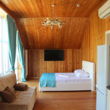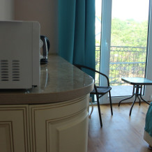 Номер класса люкс с прямым выходом во двор, можно использовать для людей с ограниченными возможностями! Во дворе беседка с мангалом, барбекю зоной и панорамным видом на море. Постройка 2021 года, все новое. Номер оборудован всем необходимым, полноценной кухней, кондиционером и посудой.