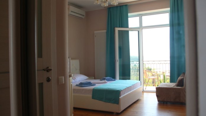 Огромный номер с видом на море и знаменитый Кара-Даг. Имеется ванная, полноценная кухня и отличная новая мебель. Постройка 2021 года, идеальное состояние. Море видно из всех окон и двух балконов.