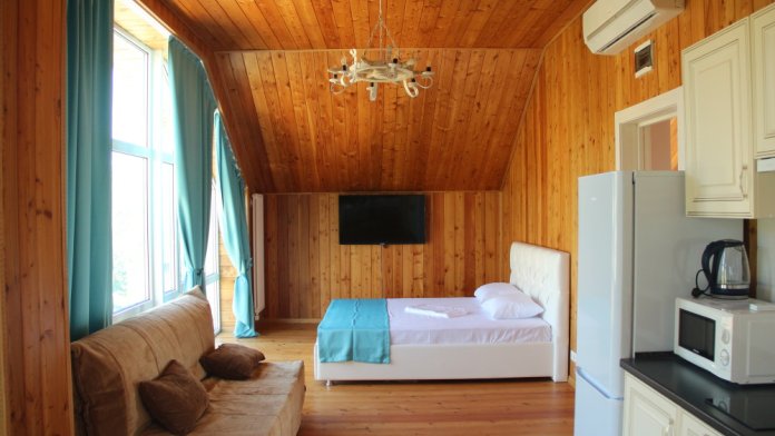 Наш люкс класса «Премиум» оснащен всем необходимым для незабываемого отдыха. Ортопедический матрас обеспечит вам глубокий и здоровый сон, а современный кондиционер поддержит оптимальный климат в вашем номере.