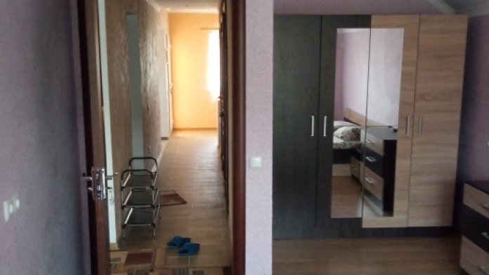 Номер состоит из трёх комнат, кухни, столовой. Есть стиральная машина, холодильник, кондиционер, балкон. Полноценная трехкомнатная квартира.