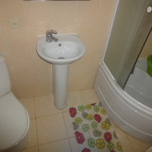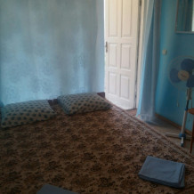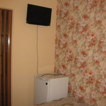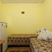 Трехместный эконом, в нрмере есть три кровати, пенал для вещей, столик, холодильник, телевизор, вентилятор. Душ и туалет общего пользования на территории. Кухня общая оснащена всем необходимым, две плиты, микроволновка, чайник, прсуда. При нрмере во дворе есть сврй столик со стульчиками.