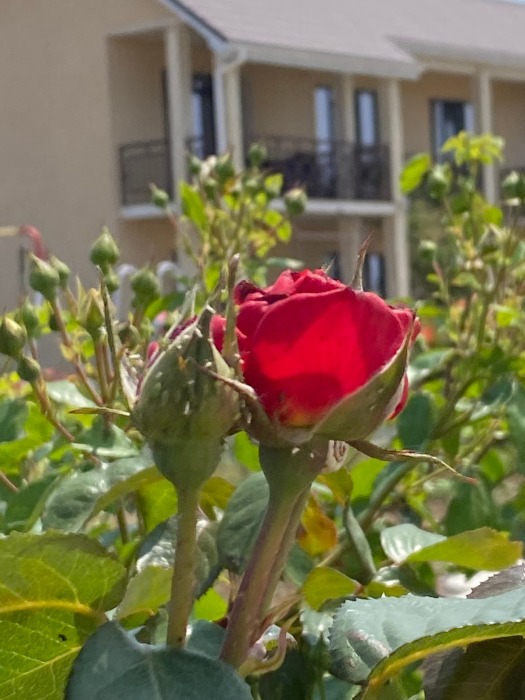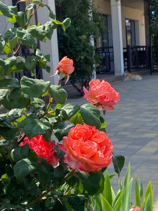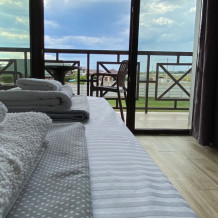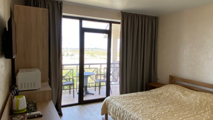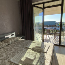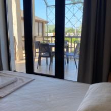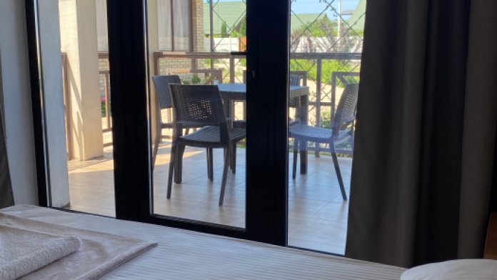 Все номера имеют уютную террасу, оборудованную креслами и столиками, где на свежем воздухе можно приятно провести утреннее либо вечернее время. С балконов номеров второго этажа открывается частичный вид на море.