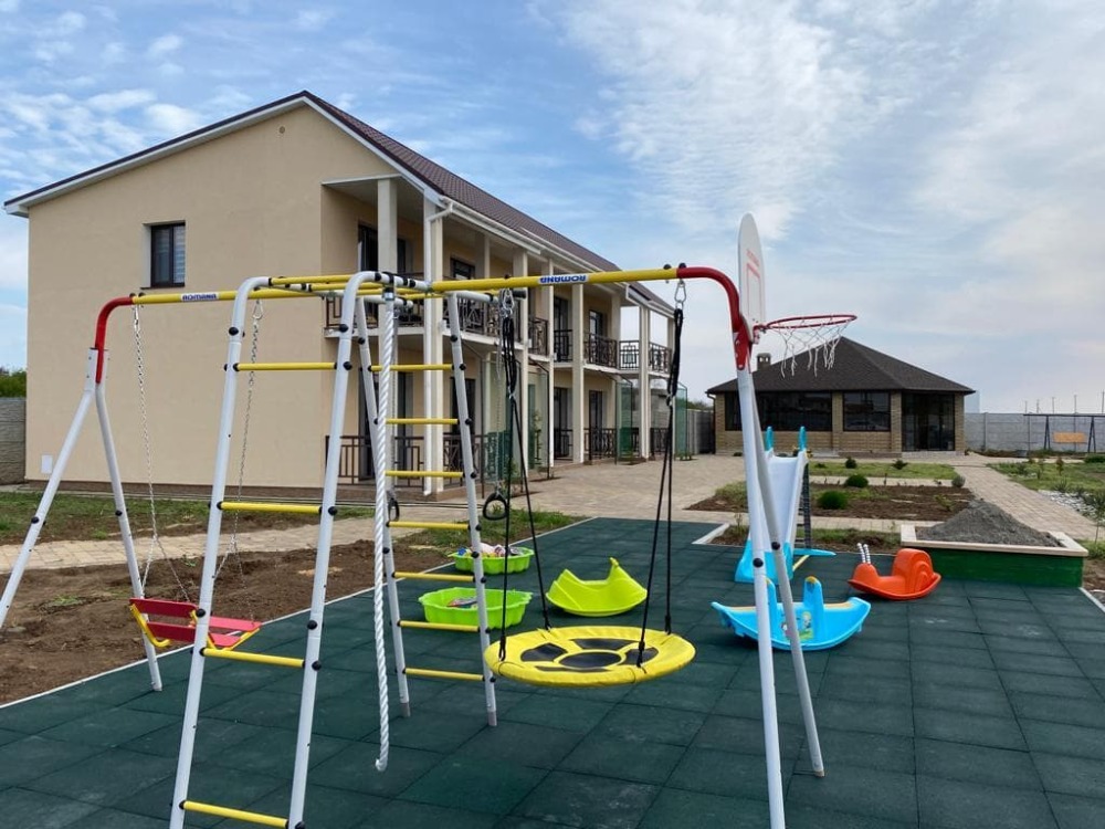 Территория закрытая, площадь 25 соток, имеется детская площадка, мангальная зона.