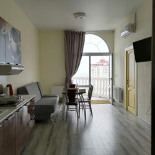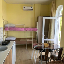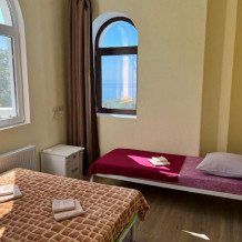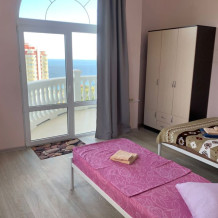 Уютный номер, с прекрасным видом на море. В номере есть все необходимое для комфортного проживания. Подойдет как для пары, так и для друзей,подруг. Номер с одной двухспальной кроватью или двумя раздельными. В номере есть встроенная кухня с микроволновкой, варочной панелью и электро-чайником. Подойдет как на длительный срок, так и посуточно.