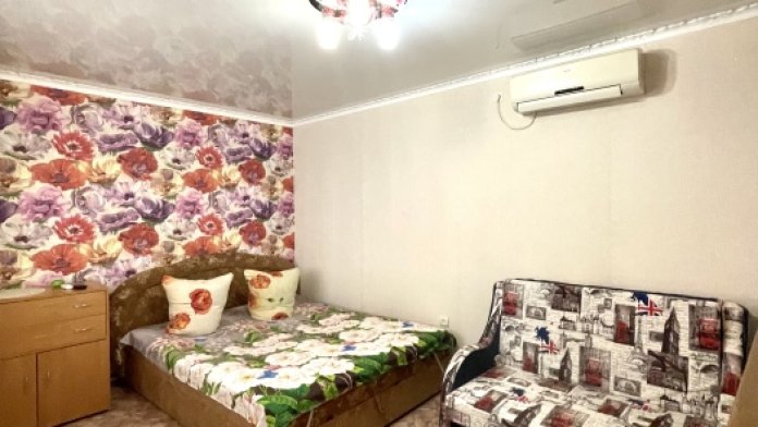 Одна комната позволят комфортно разместить 3 человека ,на лоджии дополнительно установлена кровать и прикроватная тумбочка -маленькая уютная комната ,комнаты расположены на 2-ом этаже ,оснащена кондиционером.